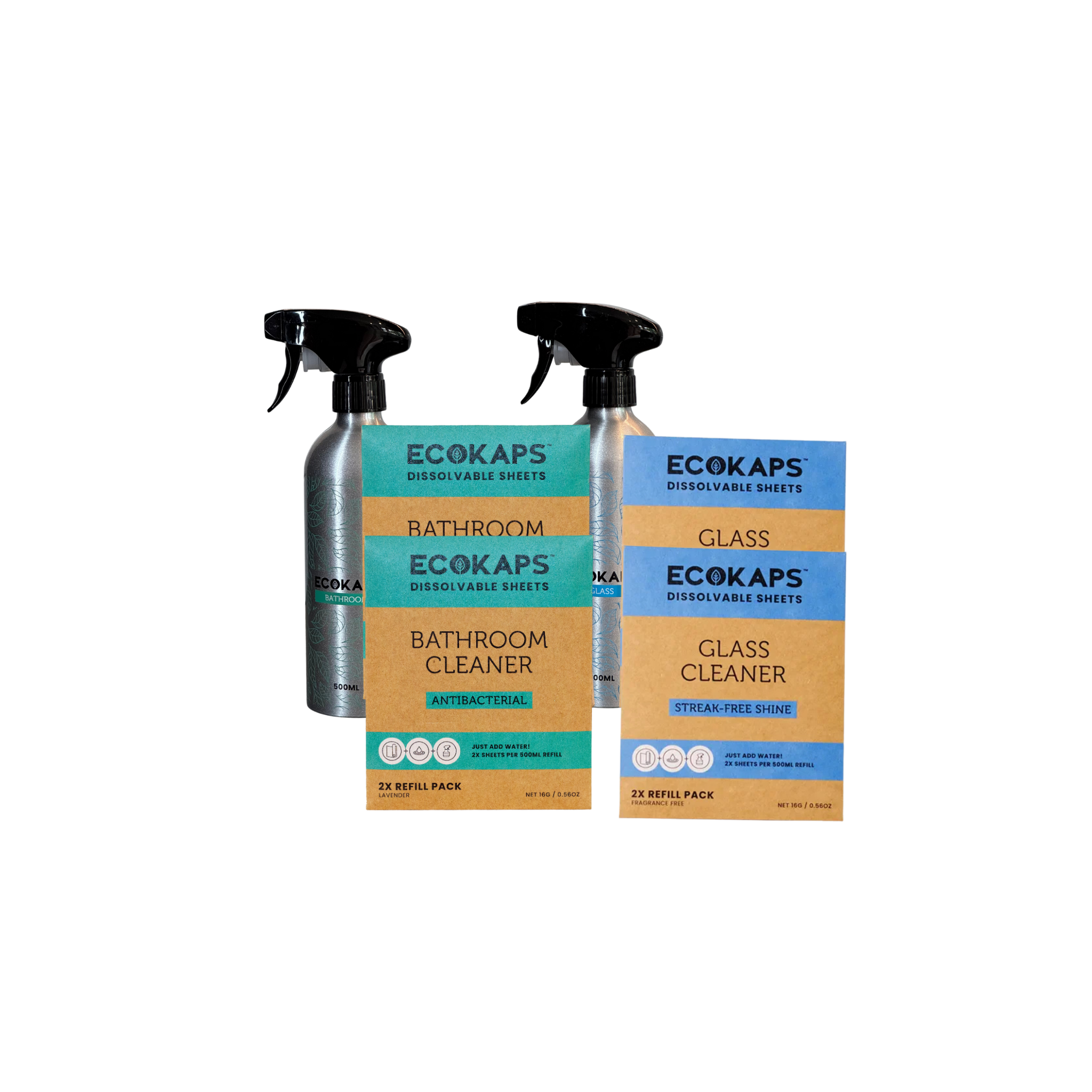This set brings together two of EcoKaps’ most effective cleaners, Bathroom and Glass, both in bottle kits with 2× refill packs.